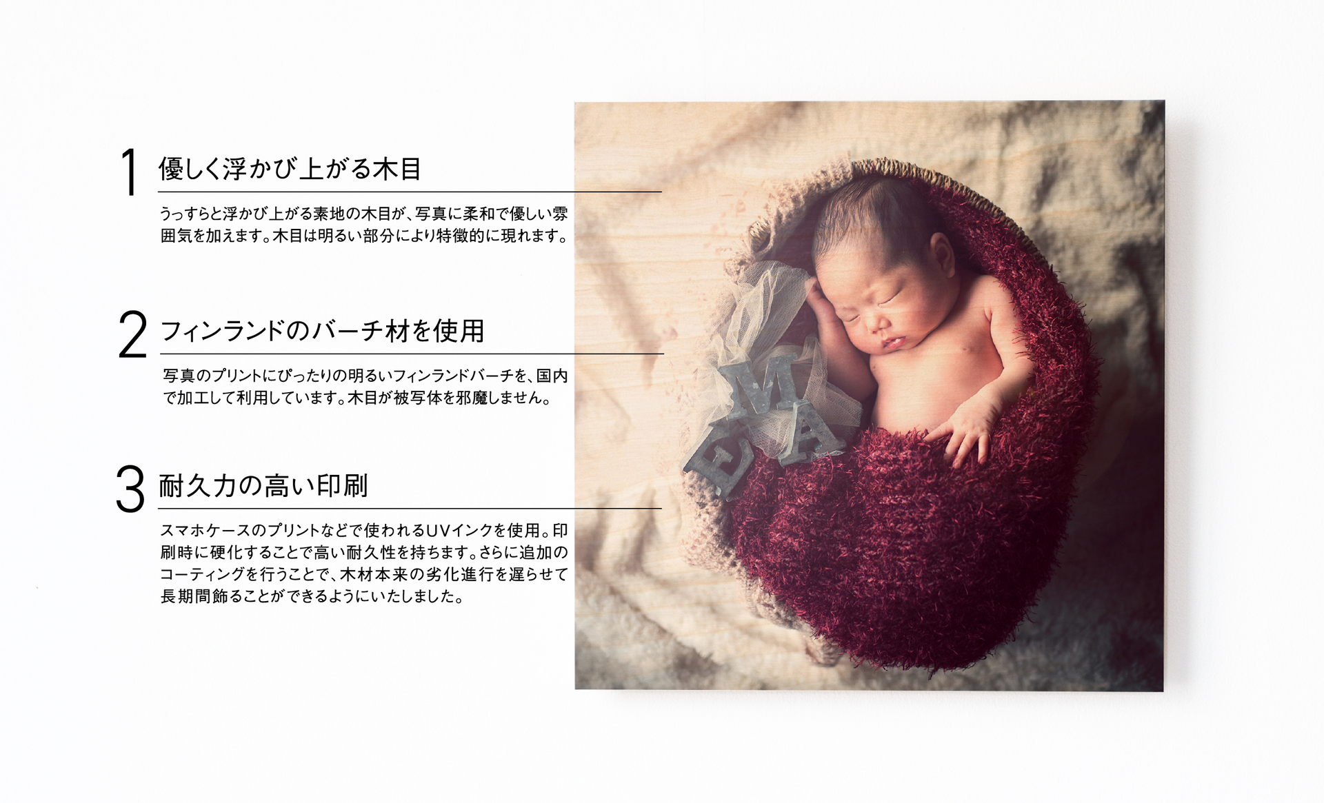 柔らかな 木目 が浮かび上がる、